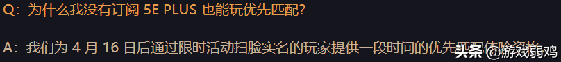 前一段时间5E搞了个人脸验证系统,广大CSGO玩家一度以为5E开始要有所作为了。在刚出之时推出限时免费优先资格申请,只要你通过人脸验证就可以获得优先匹配资格。所有人都以为获得的优先匹配资格是永久的。然而在昨天,5E给了所有人一个惊喜。这个暂且不说,与这个通知随之而来的是5E最新会员系统,5EPLUS!这个新会员系统在CSGO贴吧可是掀起了热议,一时间分不清谁对谁错。下面就...